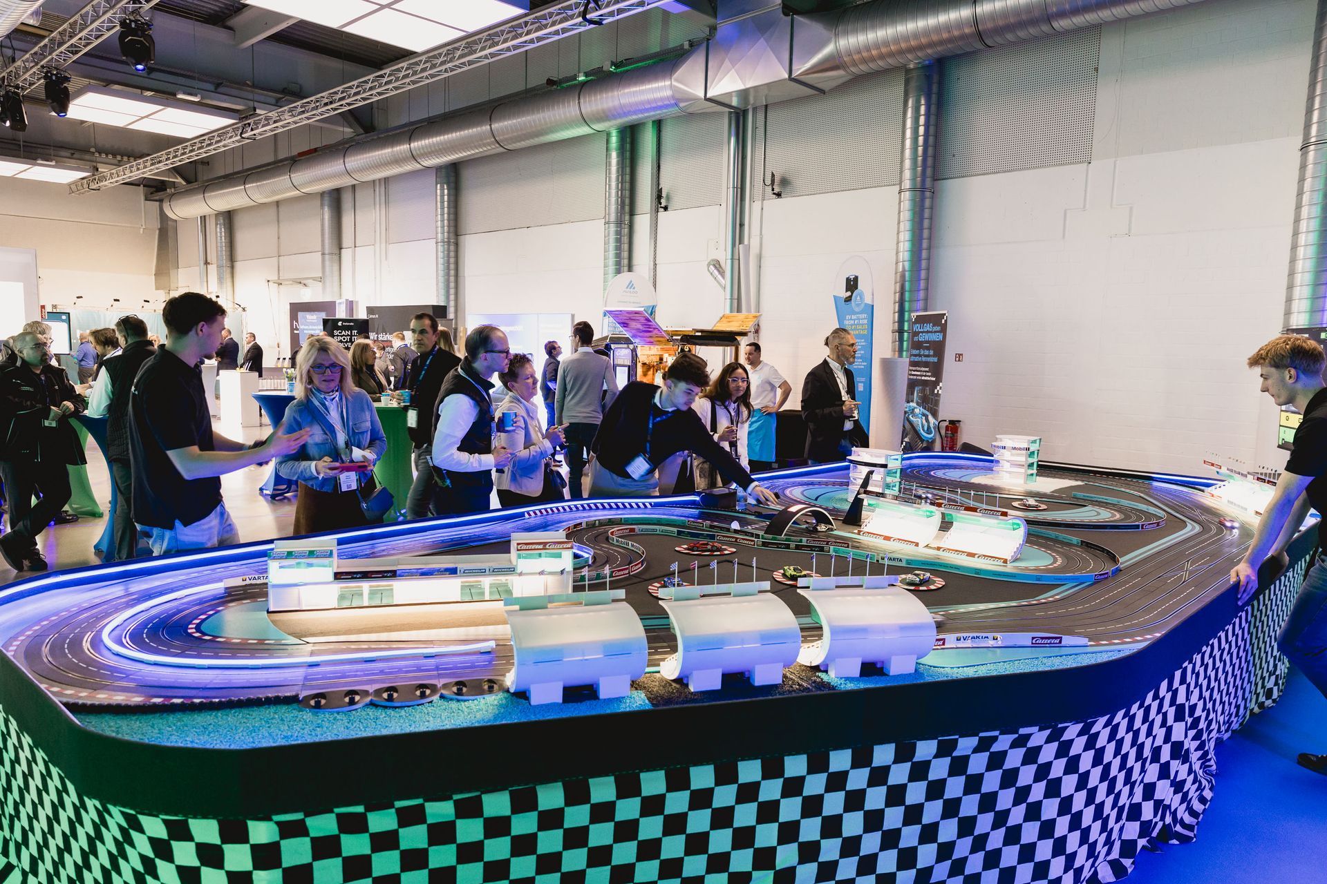 Stellen Sie Ihr Können auf unserer 25 Meter langen Rennstrecke unter Beweis! Auf der überdimensionalen Carrera Bahn, eine Nachbildung der "Abu Dhabi" Rennstrecke, können bis zu 6 Personen gleichzeitig antreten.